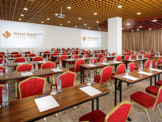 Das Hotel SATEL*** in Poprad bietet bis zu 8 Konferenzräume. Die Kapazität des größten Konferenzraums beträgt 300 Gäste. In unmittelbarer Nähe des Hotels befindet sich das Rathaus von Poprad, wo bei Bedarf ein Tagungsraum mit einer Kapazität von bis zu 400 Personen sowie große Flächen vor dem Tagungsraum genutzt werden können.